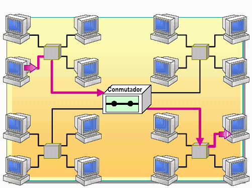 Cuando las redes no tienen las características de un enlace dedicado, entonces decimos que son redes conmutadas porque debe establecerse la ruta de datos –o trayecto- antes de comenzar la comunicación entre dos sistemas de transmisión. Una red conmutad por un trayecto de acuerdo a cuál sea la tecnología empleada y la técnica para conmutar, encontramos redes de conmutación: de circuitos (circuit switching), de paquetes (packet switching) y de mensajes (messages switching). Independientemente de cuál analicemos, las características principales de ellas son: La transmisión no puede ser preestablecida o preacondicionada, por cuanto los circuitos que se establecen y las rutas de los datos empleadas podrán cambiar de sesión en sesión. Cuando la comunicación se corta, se libera el enlace.
